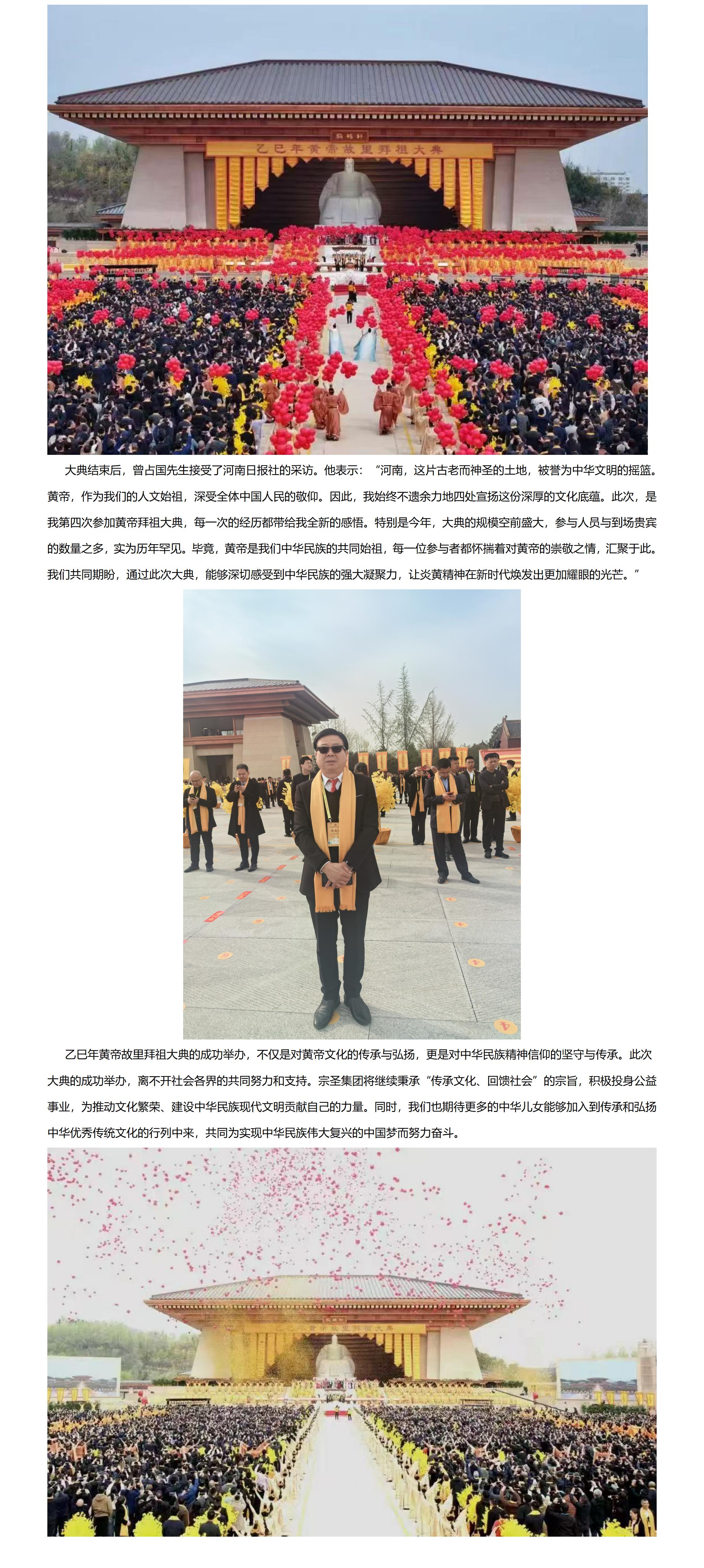 河南省孝促會(huì)常務(wù)副會(huì)長(zhǎng)、河南省鄉(xiāng)村振興協(xié)會(huì)副會(huì)長(zhǎng)、宗圣集團(tuán)董事長(zhǎng)曾占國(guó)先生先生參加乙巳年黃帝故里拜祖大典